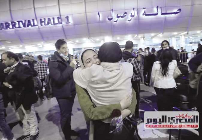 Mohamed Salah, the father of one of the returnees, said that his son is studying at a medical college in eastern Ukraine in an area that witnessed violent hostilities. He thanked the Egyptian authorities for the speed of movement and transferring them from Ukraine.