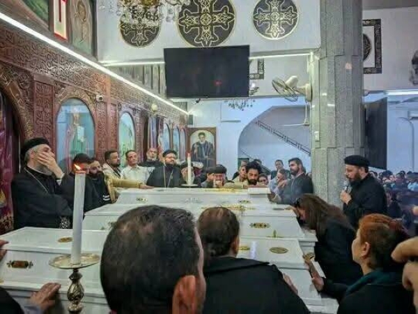 Funeral prayers were then held for the deceased at the Deir Mawas Cathedral, before their burial in the family cemetery.
