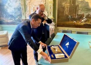 Photos online went viral on social media showing Ambassador Christopher Juncker, the Director of the King’s Office of the Netherlands, receiving Egyptian Ambassador Emad Hanna, who delivered an invitation from President Abdel Fattah al-Sisi to King Willem-Alexander of the Netherlands to participate in the opening ceremony of the Grand Egyptian Museum (GEM).