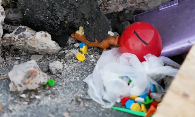The scene of his death is typical for an eastern town, where Ukrainian troops live among the locals, and Russian bombs refuse to discriminate, and torment every night. An elderly woman, tending her plants in the courtyard, mutters how troops in the town make them a target. Another neighbor clears broken glass from the stairwell still stained by Tymur’s blood. On the roof, children’s plastic toys are trapped beneath upturned roofing felt. Three generations of Nastya’s family have lived in her mother’s apartment, and the children’s toys were stacked up in plastic bags for when grandchildren visit.