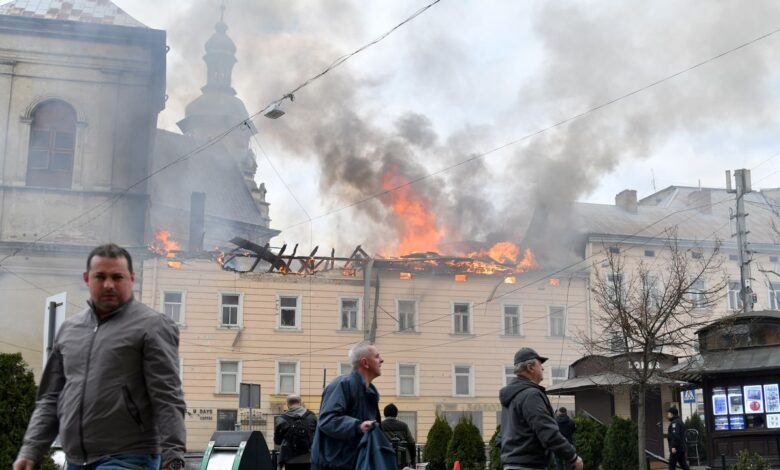 A church building in part of Lviv’s Bernadine Monastery Complex, a UNESCO World Heritage site, was also hit, according to Maksym Kozytskyi, head of Lviv region military administration.