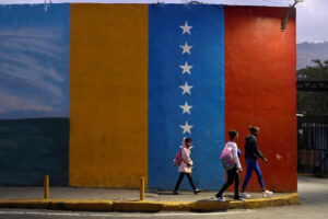 People walk past a mural painted in the colors of the Venezuelan flag in Caracas, Venezuela, on February 2. Maxwell Briceno/Reuters
