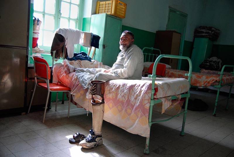 For 63 years now, he has lived in Abu Zaabal, blind, with disfigured mouth and nose and limps. But he listens to the radio every day and is up to date with world news.
