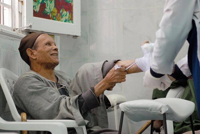 Jehad does not only take care of the garden she also visits those patients who suffered so much from leprosy that thy have to spend their lives in bed. Sheikh Sayed, 88, suffered from leprosy since he was six years old. But only when he had an eye operation at the age of 18 the doctor diagnosed him with leprosy.