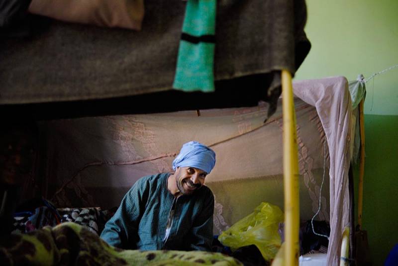Gohari ,18, is the youngest male patient at Abu Zaabal. He finished his MDT treatment and now receives physiotherapy for his hands. Effective treatment for leprosy appeared in the late 1930s with the introduction of dapsone and its derivatives. However, leprosy bacilli resistant to dapsone gradually evolved and became widespread, and it was not until the introduction of Multi Drug therapy (MDT) in the early 1980s that the disease could be diagnosed and treated successfully. Belonging to the younger generation Gohari does not want to spend his life in the colony but wishes to go return to Kafr El Sheikh, his home town, and continue school.