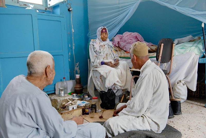 A little mosque is frequented often by everybody who can walk. A priest visits Christian patients regularly.