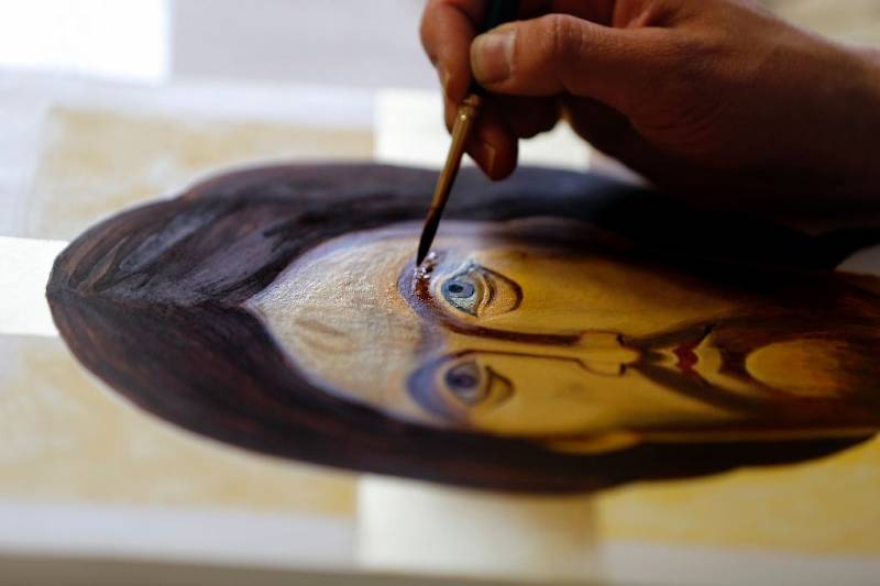 For the 33-year-old Christian, spending days painstakingly painting Christ's face is "a way of getting deeper into the characters of the Bible and the story of the Bible".