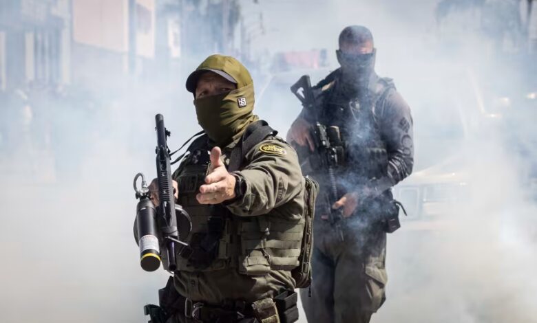 People attend a rally and march in Oxnard, California, on July 11 after around 200 people were detained by federal officers during a raid at a cannabis farm in nearby Camarillo.