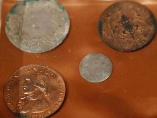Among the items in the box were two dozen coins including a 1652 Pine Tree Shilling struck by colonists in defiance of England, a bronze medal portraying George Washington, a silver plate made by Revere, and colonial records and newspapers.