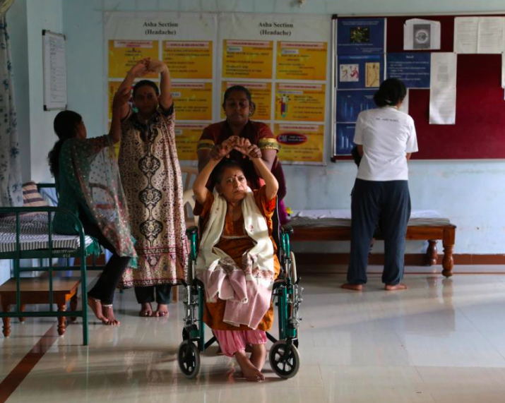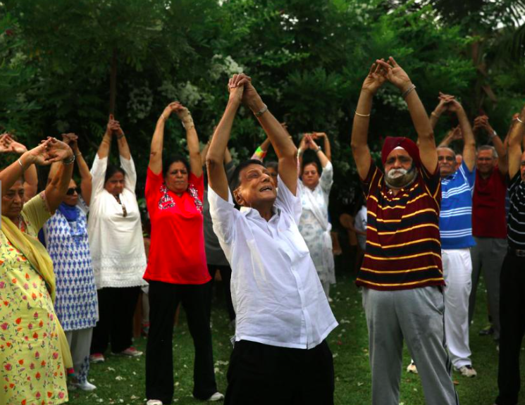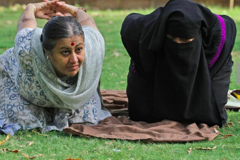 The soldiers in Kashmir are squatting on mats and arching their backs. In the parks of Mumbai, retirees reach toward the sky, or cover their eyes in a form of meditation. In New Delhi, one of the city's main parks erupts every morning with the guffaws of believers in "laughing yoga," who say forced laughter can give way to true inner peace.