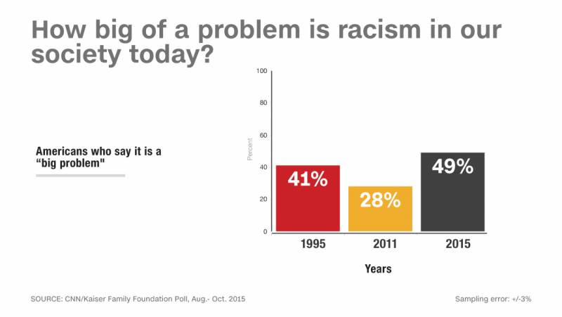 In a new nationwide poll conducted by CNN and the Kaiser Family Foundation, roughly half of Americans — 49 percent — say racism is "a big problem" in society today.