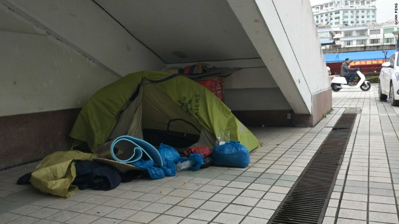 Quan Peng has been sleeping in roadside tents as hotels have rejected him as a guest or weren't wheelchair accessible.