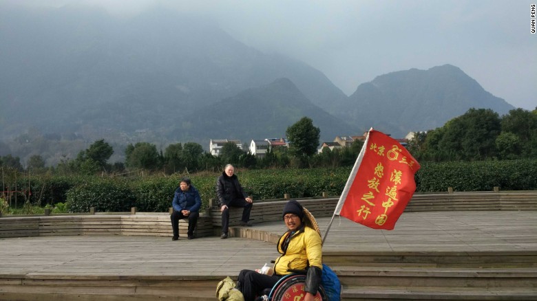 Quan Peng has been travelling across China for the past two years by wheelchair.