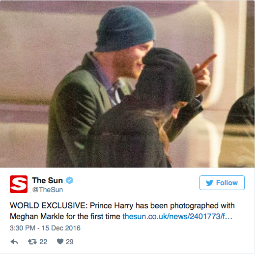 The Sun has scored what it says are the first public photos of Prince Harry and his actress girlfriend Meghan Markle.