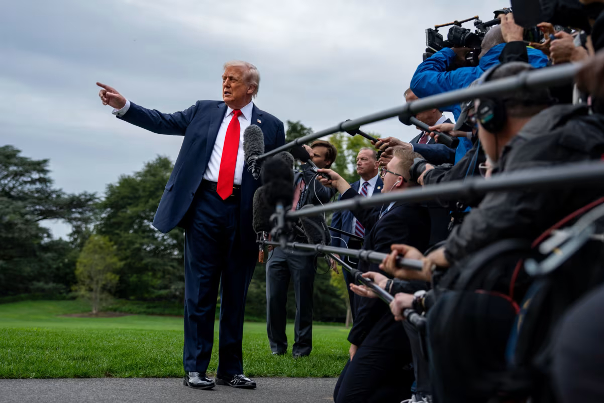 President Donald Trump speaks to members of the media at the White House on September 16. Bonnie Cash/UPI/Bloomberg/Getty Images