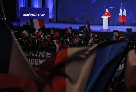 Marine Le Pen, French National Front (FN) political party leader and candidate for French 2017 presidential election, attends a campaign rally in Paris, France, April 17, 2017 (Pascal Rossignol / Reuters)