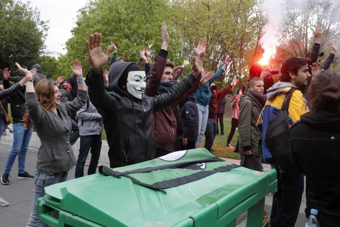 People protest near the venue of the campaign rally for Marine Le Pen, French National Front leader and candidate for French 2017 presidential election in Paris, France, April 17, 2017 (Philippe Wojazer / Reuters)