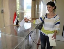 An Egyptian expatriate living in Lebanon, casts her ballot at a polling station at the Egyptian embassy in Beirut