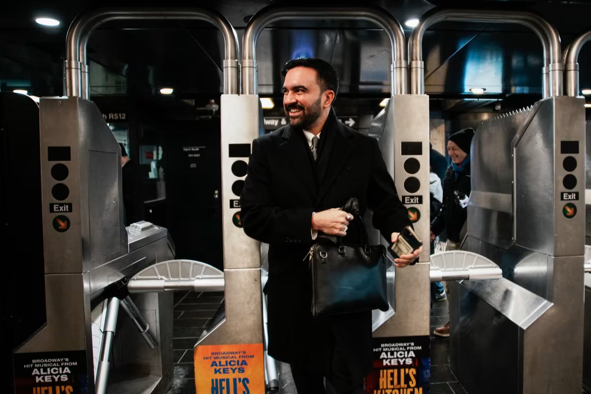 New York City Mayor Zohran Mamdani arrives at the subway station in the Queens borough to go to City Hall in New York on January 2. Eduardo Munoz Alvarez/AP