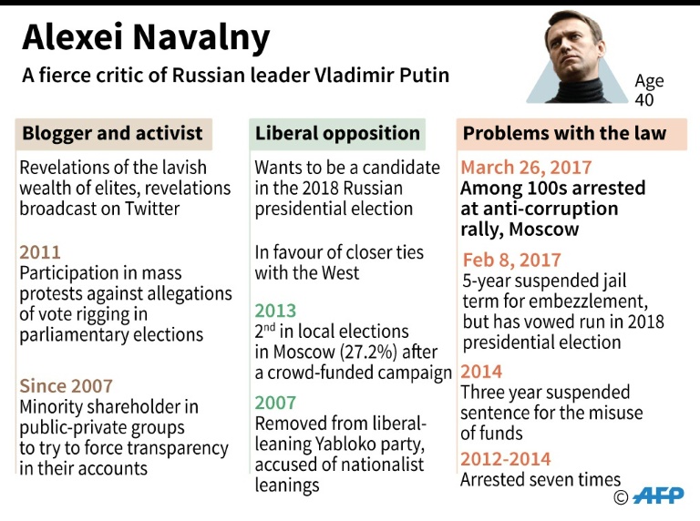 Navalny, a 40-year-old lawyer by training, first announced plans to run for the presidency after he won a surprise 27 percent of the vote in the Moscow mayoral election in 2013.
