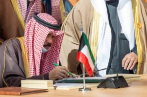 1/2 Kuwait’s Emir Nawaf al-Ahmad al-Sabah attends the Gulf Cooperation Council’s (GCC) 41st Summit in Al-Ula, Saudi Arabia January 5, 2021. Bandar Algaloud/Courtesy of Saudi Royal Court/Handout via REUTERS/File Photo