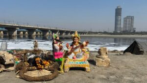 Activists pulled items from the polluted Yamuna River, including statues of idols, on January 25, 2026, as high levels of ammonia made the water was too toxic to treat. Esha Mitra/CNN