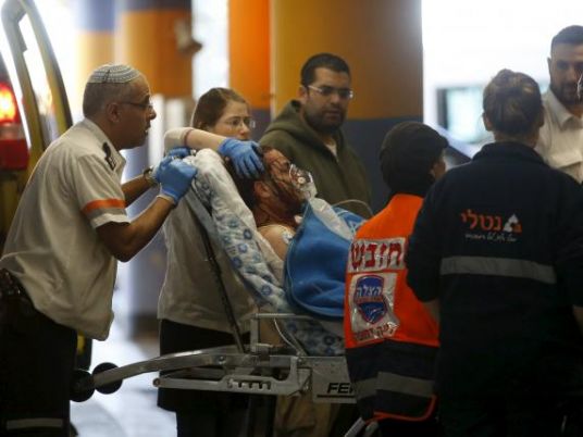 The two injured Israelis were taken to a Jerusalem hospital for treatment and a spokeswoman said one was lightly hurt and the other was in moderate condition.