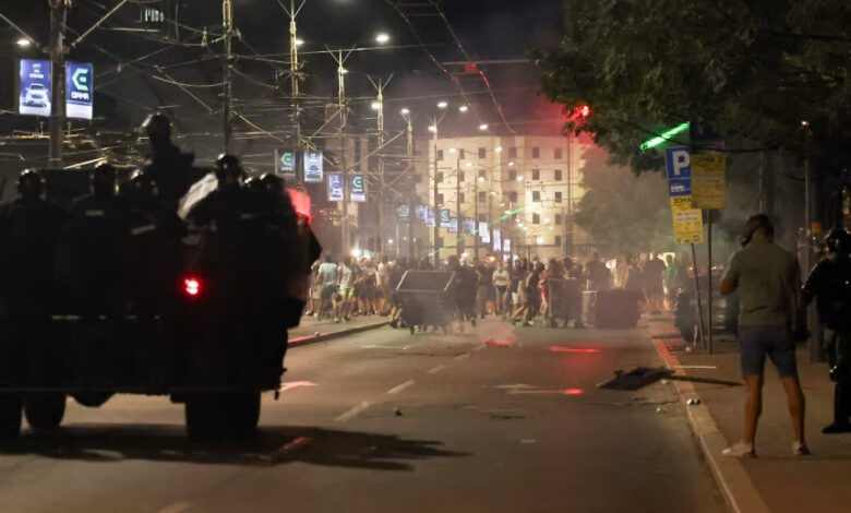 The demonstrators on Saturday evening also clashed with police in Belgrade, the capital, and in the northern city of Novi Sad. Riot officers used tear gas against demonstrators who hurled stun grenades, flares and bottles at them.