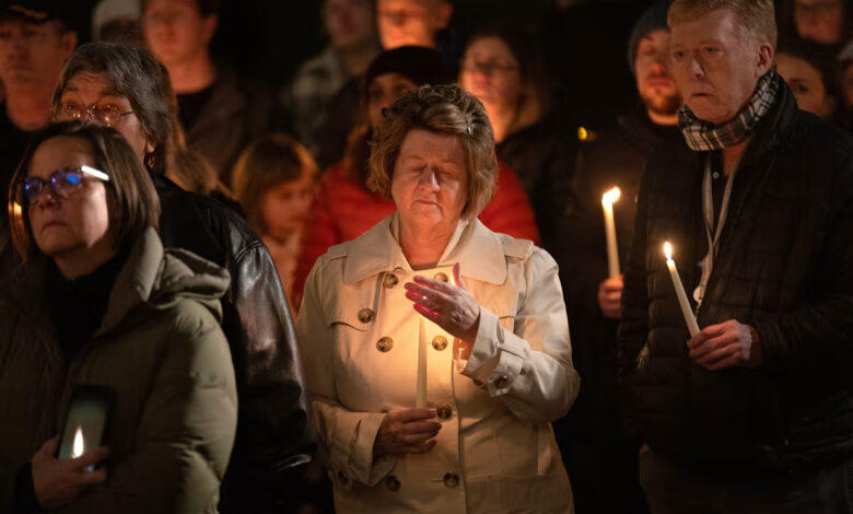Mayor Darryl Krakowka said the town is “one big family,” as he choked back tears during a news conference following the vigil.