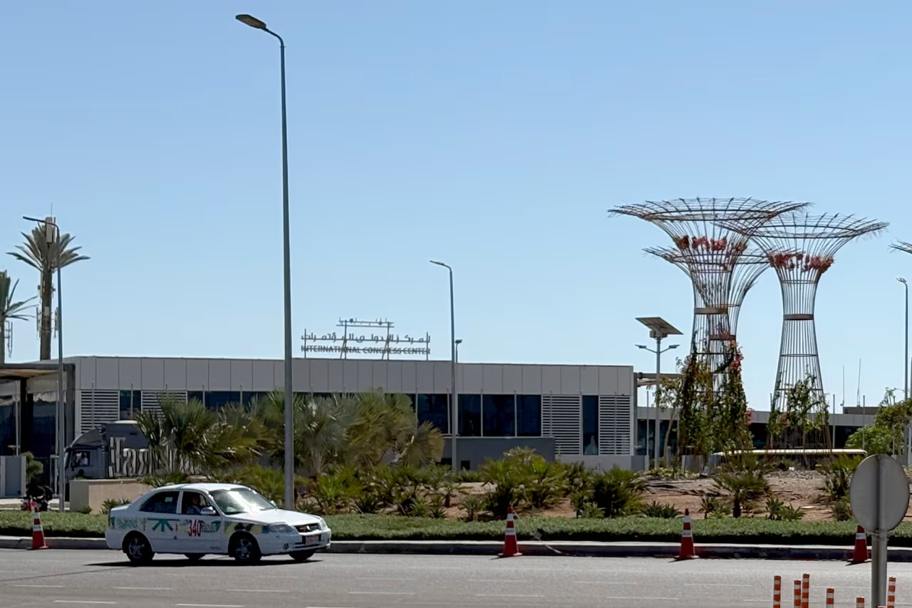 The International Conference Center where Israeli and Hamas officials are set to hold indirect talks on Wednesday.