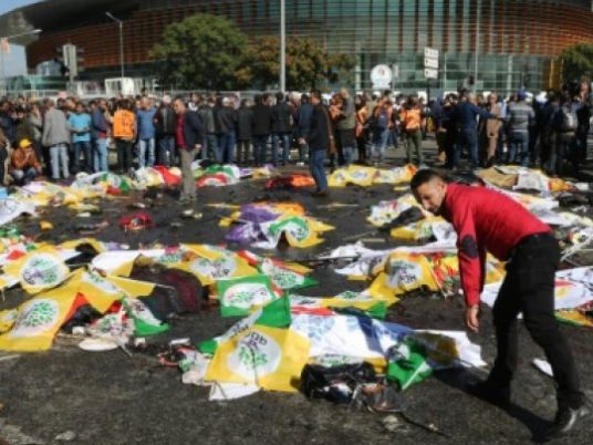The demonstrators filled Sihhiye Square in central Ankara, close to the site of Saturday's blasts outside the city's train station, with some shouting anti-government slogans.