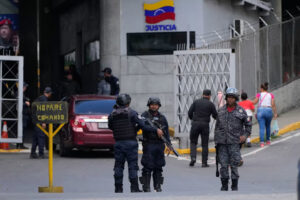 Police guard El Helicoide, the headquarters of Venezuela's intelligence service and detention center, in Caracas, on Jan. 8, 2026. Ariana Cubillos/AP